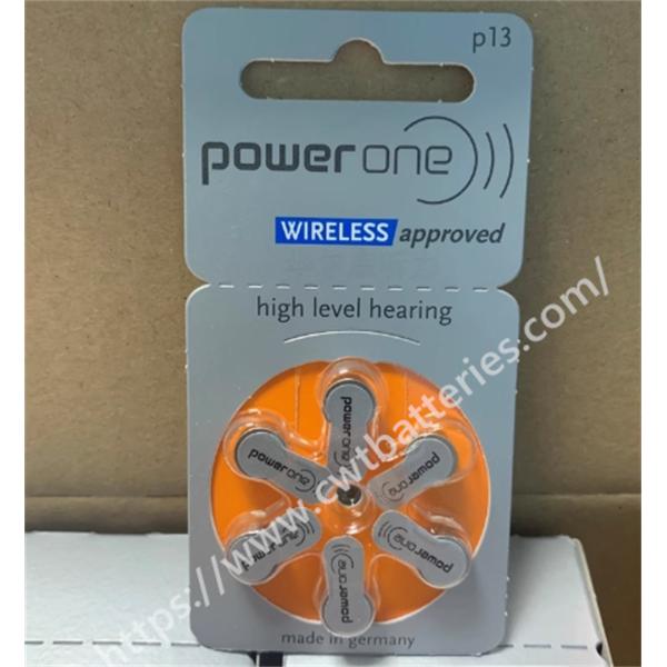 Powerone P13 1.45V Hearing Zinc Air Battery This battery is a disposable zinc-air battery designed for small and medium power hearing aids. The battery is made in Germany and is produced by Varta Microbattery of Germany. It is a medical-grade consumable. The battery has the characteristics of small size, high capacity, convenient use, and environmental protection. It is a very cost-effective battery. The battery model is P13, which corresponds to the international standard A13 model battery. The battery size is 7.9mm in diameter × 5.4mm in thickness. Since there are many batteries of similar models and it is difficult to see the difference with the naked eye, the merchant uses orange labels to distinguish other similar models of batteries, so that users can choose the corresponding battery. The nominal voltage of the battery is 1.45V, the typical capacity is 300mAh, and it can support small and medium power devices to work continuously for 7-10 days. The compatible hearing aid types are behind-the-ear (BTE) and in-the-ear (ITE) hearing aids, such as Phonak Naída BTE, Oticon Opn S ITE, etc.